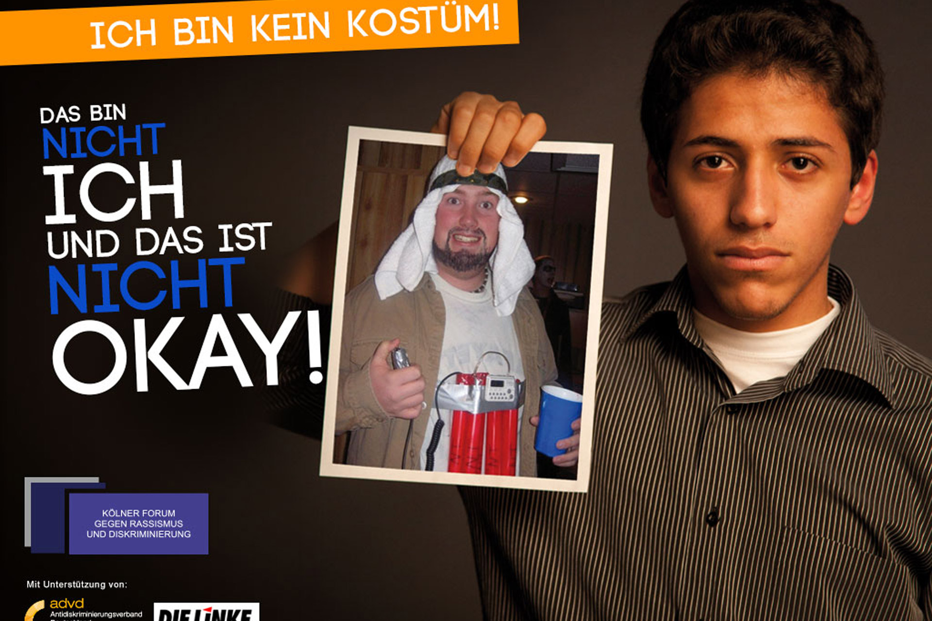 Zu den häufig kritisierten Verkleidungen zählen vor allem diejenigen Kostüme, bei denen wichtige kulturelle Symbole oder Kleidungselemente anderer Kulturen nachgeahmt werden. Das ist zwar nicht verboten, kann jedoch als respektlos bewertet werden und zu unangenehmen Auseinandersetzungen oder gar Shitstorms führen. Denn die Verkleidung als Mexikaner:in mit Sombrero, Jamaikaner mit Dreadlocks oder japanische Geisha führt häufig zum Vorwurf der kulturellen Aneignung, also der Übernahme von kulturellen Ausdrucksformen und Objekten durch kulturell ‚Fremde‘. Die Plakatkampagne „Ich bin kein Kostüm!“ des Vereins Öffentlichkeit gegen Gewalt e.V. hat 2017/18 unter anderem in Köln auf dieses Problem hingewiesen: